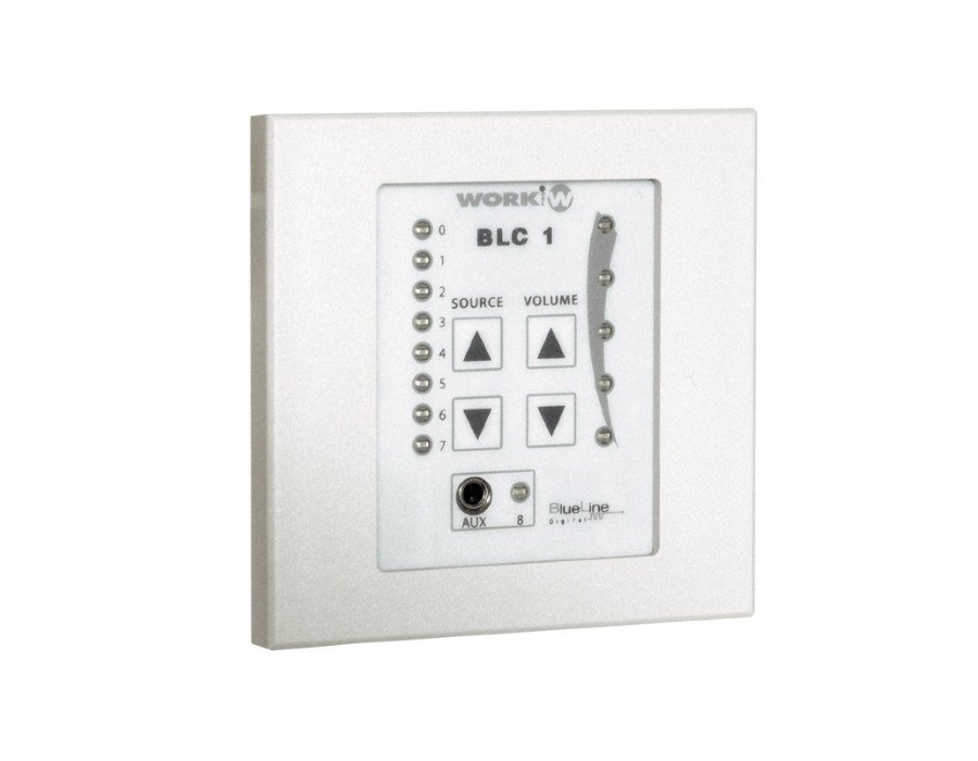 Wall-mount controller. Connection to any receiver through Cat5 cables (Not Ethernet). Possibility to control volume and to select input source. Auxiliary input for local source connection. Dimensions: 85 x 85 x 40 mm Weight: 700 g