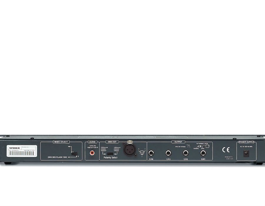 This device controls 4 DMX flashes with up to 4 channels and/or 4 analog flashes.
