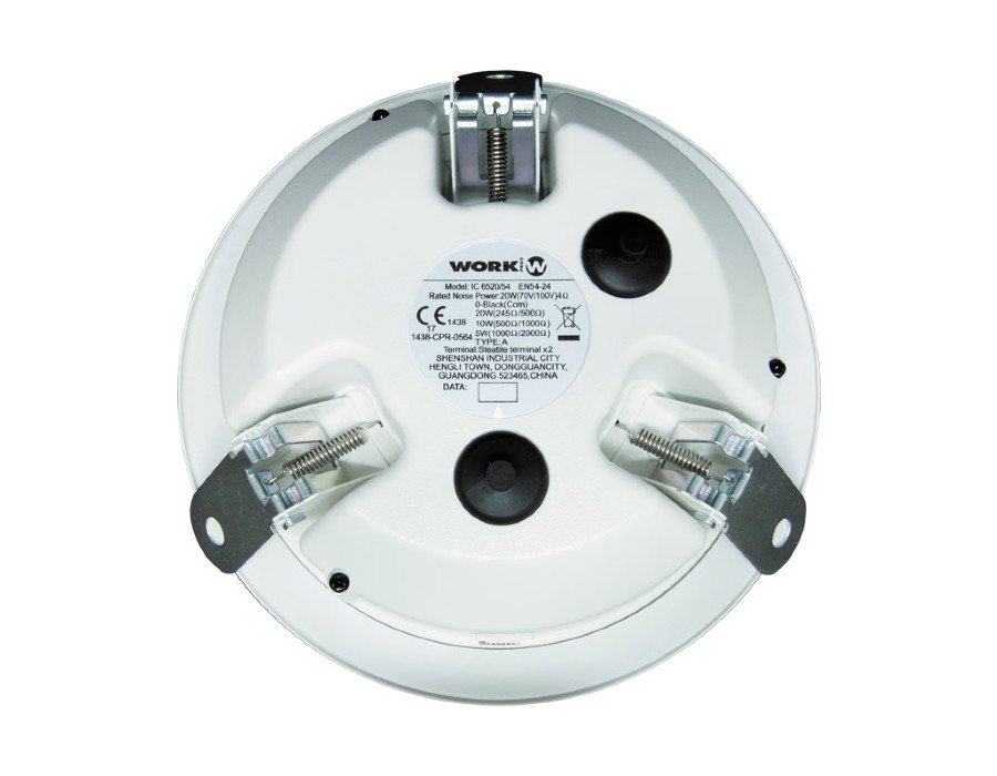 The IC ceiling speakers of WORK PRO are suitable for Voice Alarm applications as they are certified according to EN 54-24. IC 6520/54 is designed and made of 5VB plastic that prevents the fire from spreading in case of an emergency. The speaker can be easily installed using the speaker mounting spring in the panel.