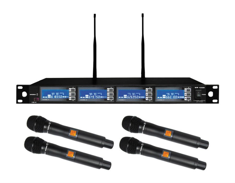WR 4200 /1 is a professional Diversity 4-channel wireless system in UHF band. Its PLL system allows a great signal stability, making it very adequate for live appliances, touring or even conference rooms.