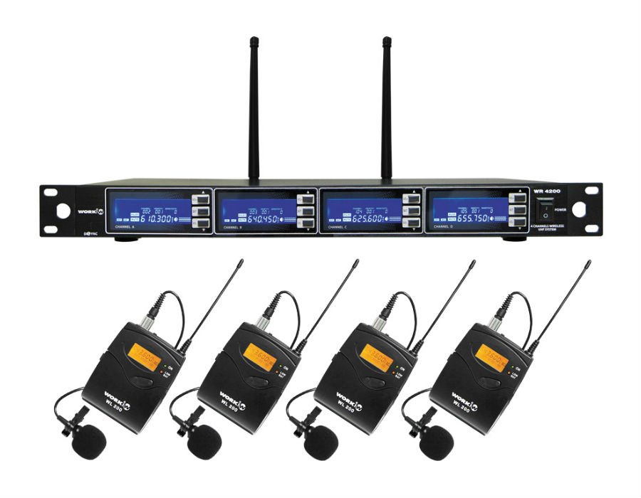 • WR 4200 /2 consists of: Receiver (WR 4200) + 4 bodypack transmitters + 4 lavalier microphones (WL 200).