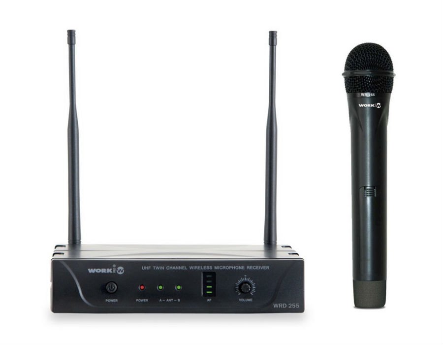 WRD 255 is a Diversity single channel wireless system for the UHF band. This feature eliminates the noise caused by distance or other devices within the same band.On the front panel, the receiver incorporates witness LEDs for operation of either antenna and AF level (marked with a VU meter).WR 255 incorporates balanced (XLR-3) and unbalanced output (jack ¼» ).