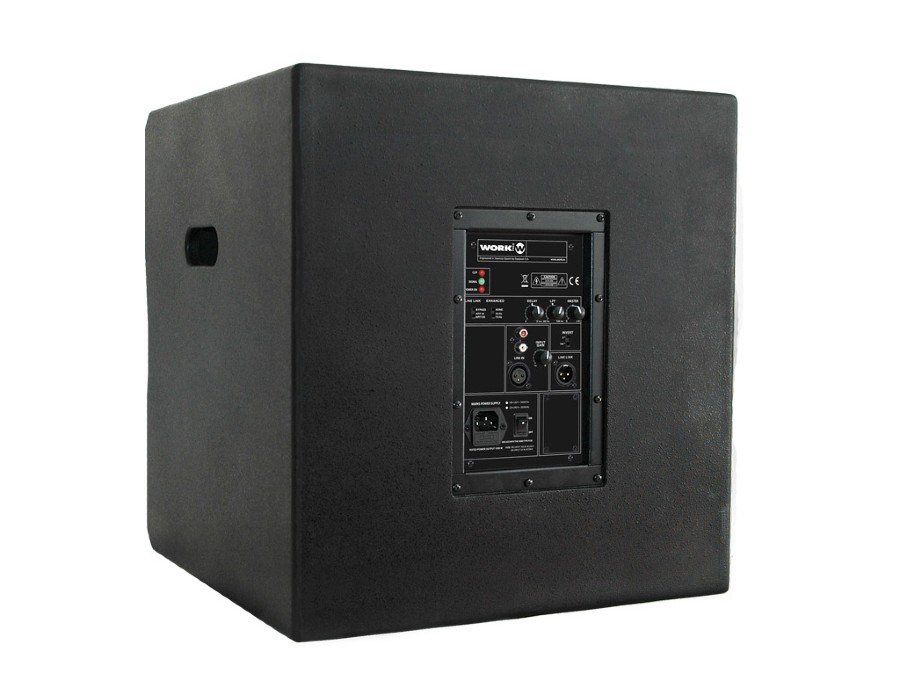 Subwoofer in active configuration. Incorporates 15″ woofer. Bass reflex des
