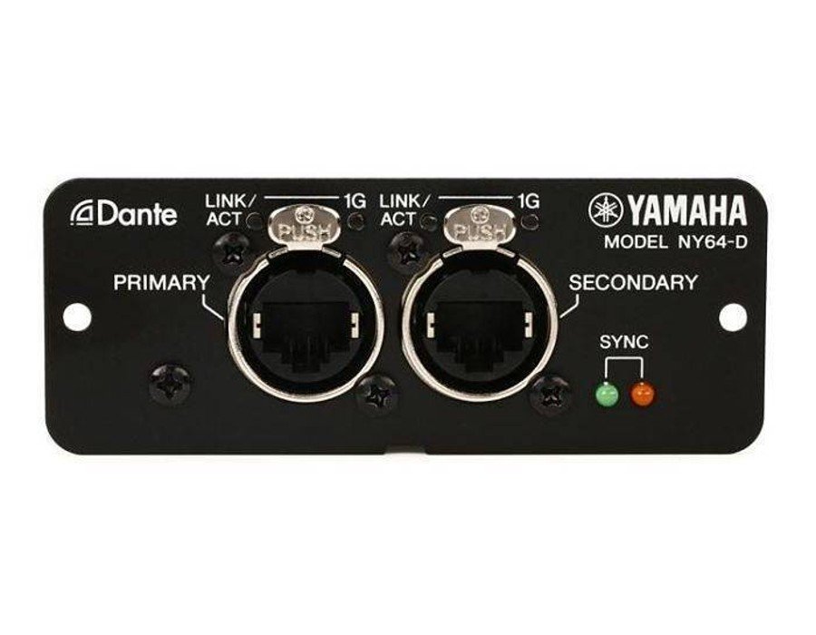 The NY64-D is an I/O expansion card for TF series consoles that allows transmission and reception of up to 128 channels (64 in/64 out) of uncompressed 48 kHz 24 bit digital audio data via a Dante™ audio network.